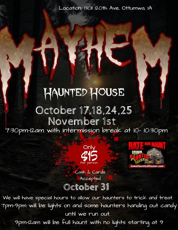 We have been voted the best Haunted House in Iowa in 2019, 2021, 2022 and 2023.